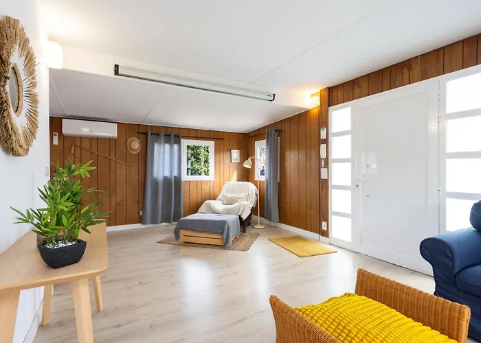 Agradable Mini Casa De Madera Con Jardin Amplio
